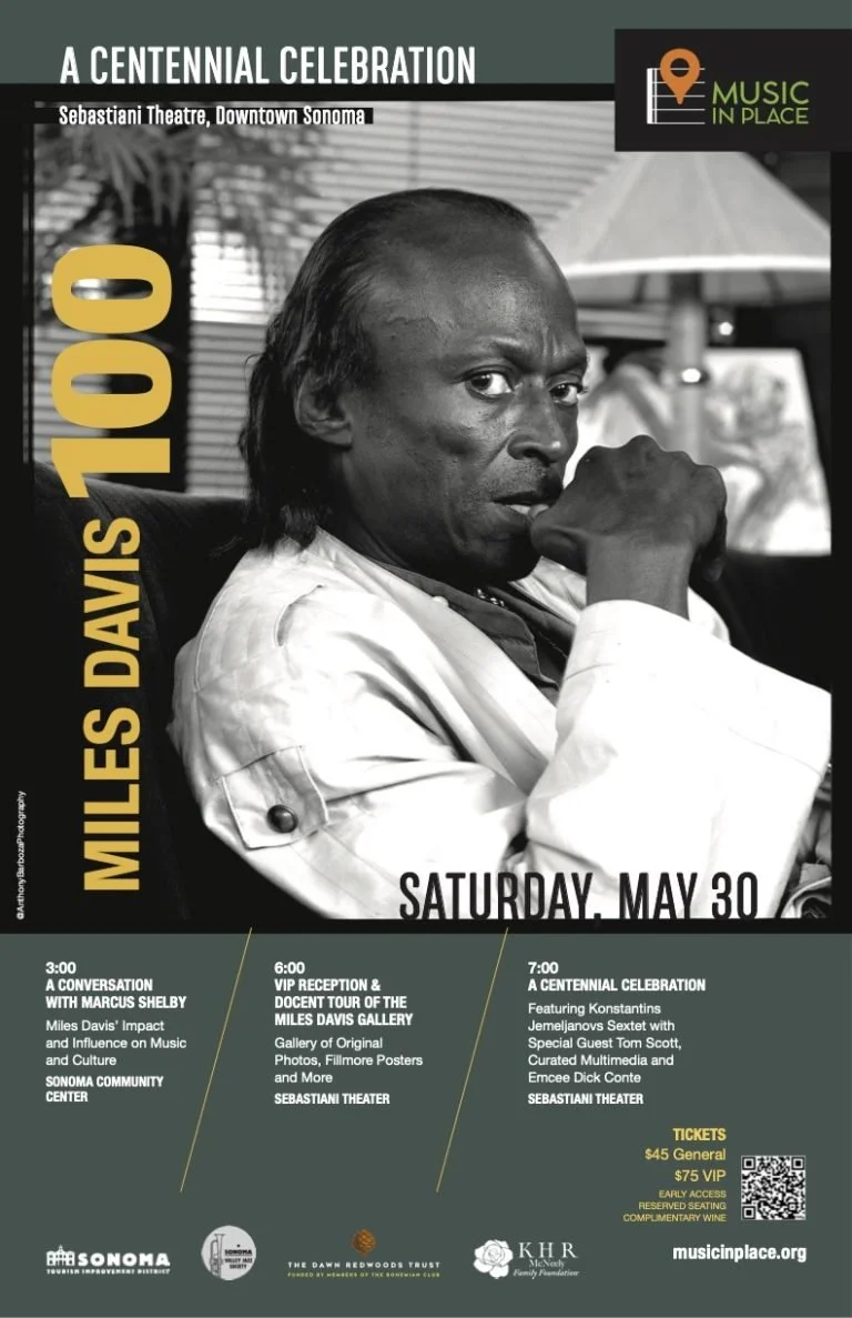 An immersive experience of visual and performing arts, including an afternoon lecture presented by Marcus Shelby, a curated exhibit of art and photographs, and a performing arts experience with live music and historical video footage. This program celebrates the many facets of the genius of Miles Davis as a musical, fashion, art and cultural icon. Join trumpeter Konstantins Jemeljanovs Quintet with special guest saxophonist, Tom Scott, as they explore the vivid career of Miles Davis.